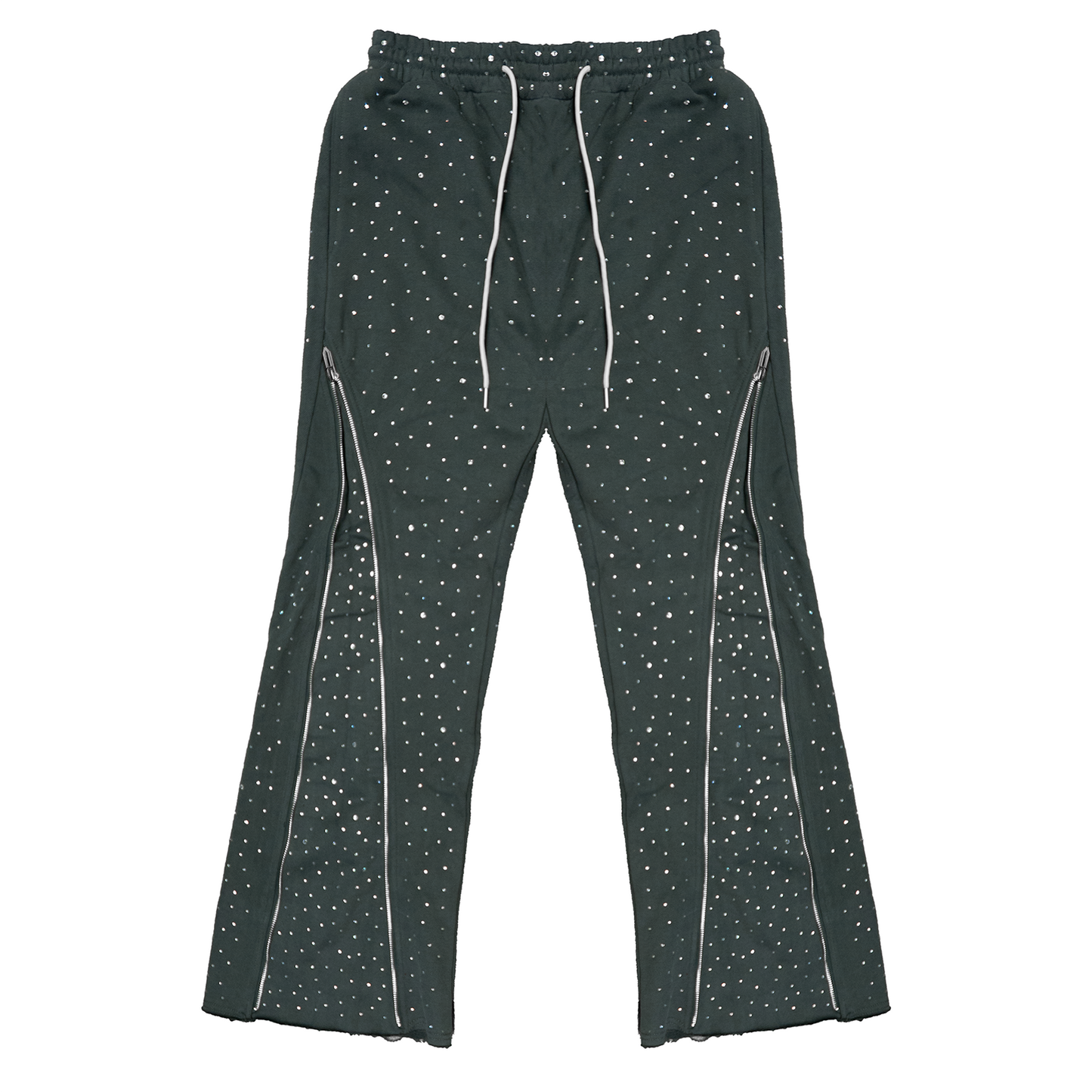 CRYSTAL ZIP FLARE SWEATPANTS (CHARCOAL)