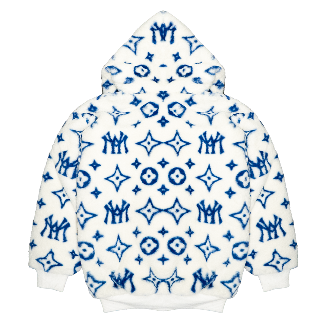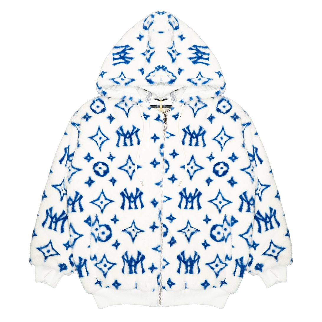 MINK HOODED JACKET (CREAM & BLUE)