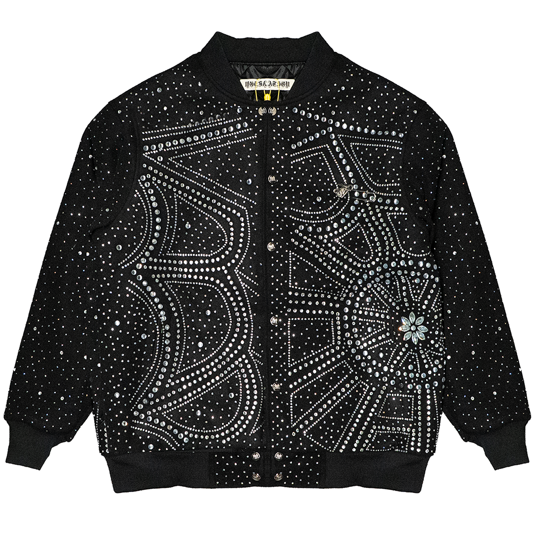 SPIDERWEB CRYSTAL VARSITY JACKET (BLACK)