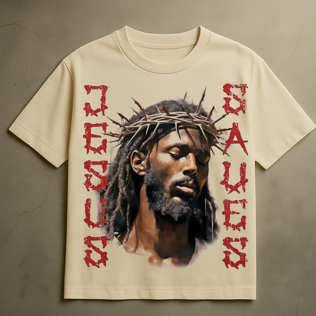JESUS SAVES T-SHIRT (CREAM)
