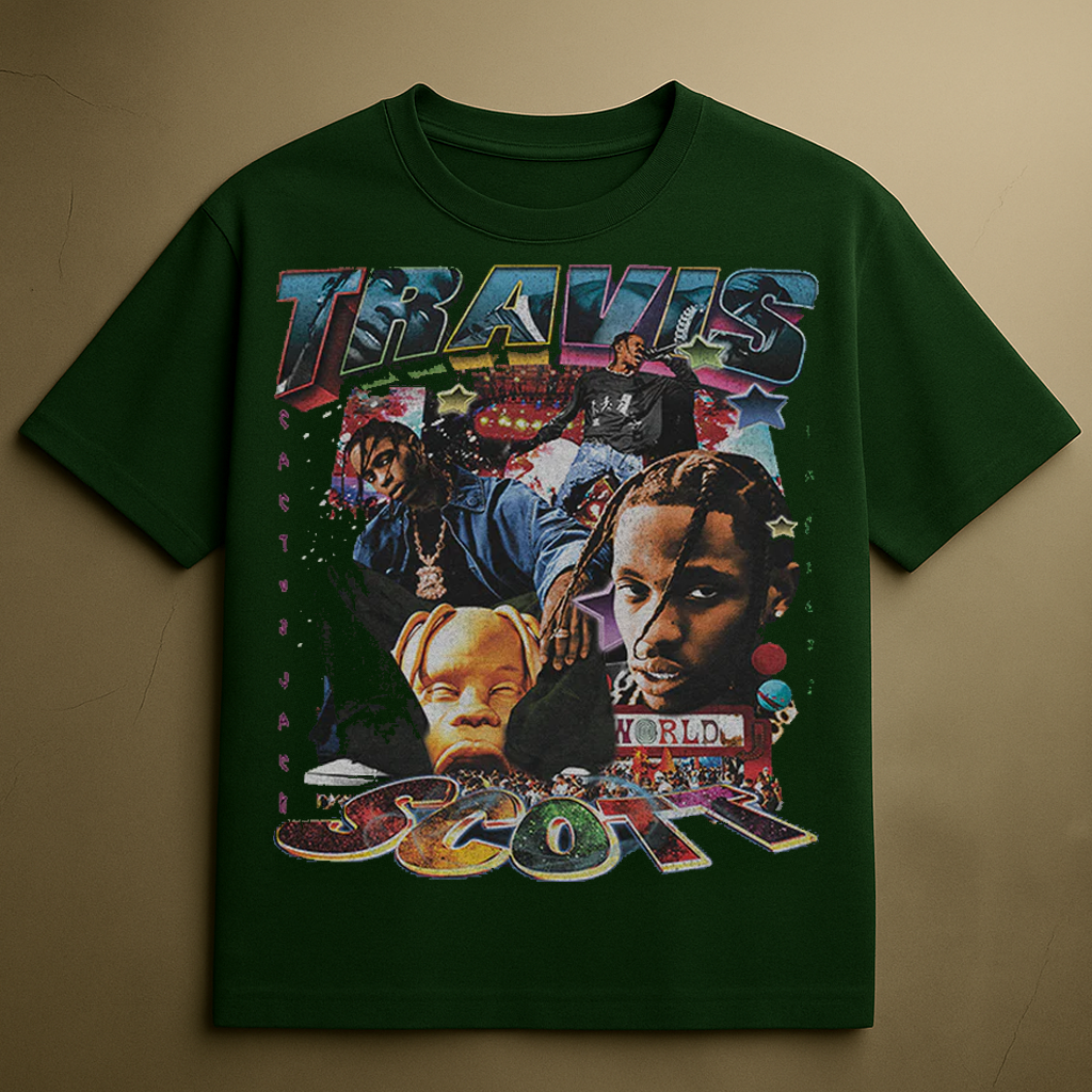 TRAVIS SCOTT COLLAGE T-SHIRT (MILITARY GREEN)